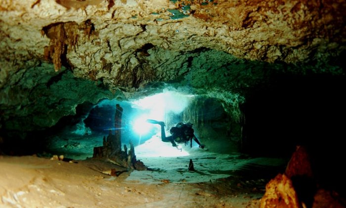 - Angelita est une plongée particulièrement spectaculaire grâce à une couche de sulfure d’hydrogène qui coupe la cavité en deux mondes superposés, le premier d’une limpidité extrême, l’autre plus crépusculaire et profond. Les plongeurs traversant l’halocline voient leur corps disparaître au fur et à mesure qu’il s’enfonce dans la couche, comme s’il s’enfonçait dans un nuage… Effet garanti ! Accès peu aisé par saut depuis la surface de la jungle, plongée profonde (fond à 60m).