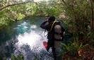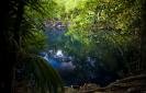 - The Pit est une des plongées les plus spectaculaires du séjour. Plongée profonde (fond à 120m, mais nous nous arrêterons à 40m !), pour plongeurs affûtés. Cette cavité possède elle aussi une couche de sulfure d’hydrogène un peu moins compacte qu’Angelita, avec des jeux de lumière absolument grandioses. Il y a encore peu, l’accès se faisait à pied à travers la jungle et la mise à l’eau se faisait par un saut de 7m. Désormais, l’accès a été aménagé et un escalier en bois facilite la mise à l’eau, pour plus de confort et de sécurité.